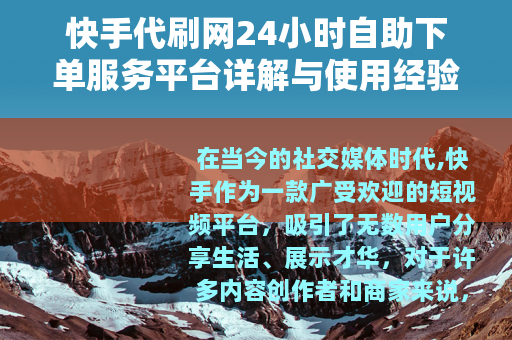 在当今的社交媒体时代,快手作为一款广受欢迎的短视频平台,吸引了无数用户分享生活、展示才华,对于许多内容创作者和商家来说,粉丝量和互动数据往往是衡量成功的重要指标,一些服务应运而生,帮助用户快速提升这些数据。“快手代刷网24小时自助下单”作为一种便捷的解决方案,逐渐成为部分用户的选择,本文将深入探讨这一服务,从其基本概念、操作流程到实际体验,提供全面的解析,希望能为感兴趣的用户带来有价值的参考。