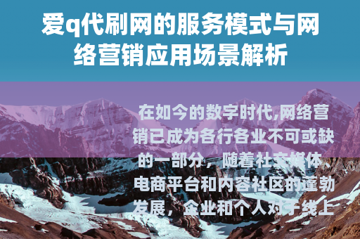 在如今的数字时代,网络营销已成为各行各业不可或缺的一部分,随着社交媒体、电商平台和内容社区的蓬勃发展,企业和个人对于线上曝光度的需求日益增长,在这样的背景下,一些服务应运而生,旨在帮助用户提升数据表现,例如增加点击量、关注数或互动率,爱q代刷网便是这类服务中的一个例子,它通过提供数据优化支持,满足用户在网络推广中的特定需求,本文将从服务特点、用户体验和行业环境等方面,对爱q代刷网进行梳理,并探讨其在网络生态中的位置。
