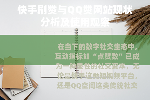 在当下的数字社交生态中,互动指标如“点赞数”已成为一种显性的社交资本,无论是快手这类短视频平台,还是QQ空间这类传统社交场域,赞的数量往往被直观地与内容热度、个人乃至商业账号的影响力挂钩,由此,一种衍生的服务——即提供快速增加点赞数量的网站或渠道——悄然存在,本文将围绕这一现象,就其运作方式、用户动因、平台逻辑及可能产生的影响进行梳理与讨论。