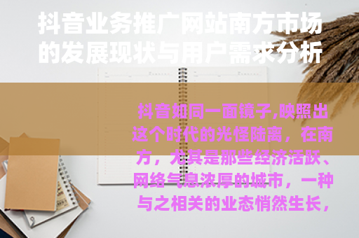 抖音如同一面镜子,映照出这个时代的光怪陆离,在南方,尤其是那些经济活跃、网络气息浓厚的城市,一种与之相关的业态悄然生长,它不常出现在聚光灯下,却与许多屏幕后的操作紧密相连,这里要聊的,便是围绕抖音衍生出的、以特定网站为载体的服务形态,及其在南方地区所呈现的独特面貌。