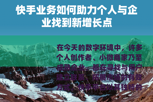 从整体看,快手业务生态的活力,正来自于无数个体与组织将其创造力与市场需求相结合的具体实践,它提供了一个舞台,让技能被看见,服务被需要,品牌被了解,这个过程的本质,是利用视频与直播这种直观的媒介,在数字空间里重建了质朴的“邻里街坊”式的信任与 commerce,并以此驱动了实实在在的增长,它的未来,将继续由那些理解社区、并愿意为之提供真诚服务的参与者共同塑造。