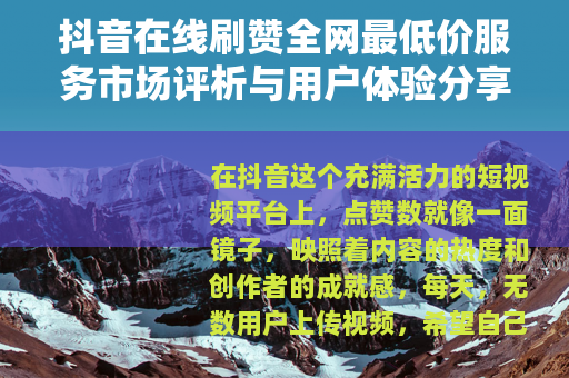 在抖音这个充满活力的短视频平台上,点赞数就像一面镜子,映照着内容的热度和创作者的成就感,每天,无数用户上传视频,希望自己的作品能脱颖而出,获得更多关注,而在这个过程中,“刷赞”服务逐渐成为一种常见的选择,尤其是当“全网最低价”这样的标签出现时,它吸引了许多人的目光,我想以普通用户的视角,聊聊这个话题,分享一些实际观察和思考,不涉及复杂的技术术语,也不刻意渲染情绪,只是平实地探讨。