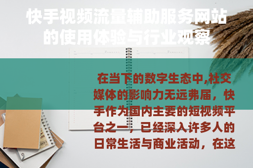在当下的数字生态中,社交媒体的影响力无远弗届,快手作为国内主要的短视频平台之一,已经深入许多人的日常生活与商业活动,在这个注重关注度与互动量的环境里,一种提供数据增长服务的网络站点——通常被称作“快手视频代刷网站”——悄然存在,这类平台的操作逻辑与用户体验,以及它们所引发的涟漪,构成了一个值得审视的侧面。