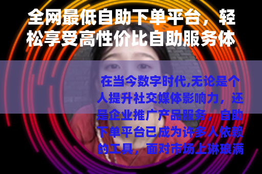 在当今数字时代,无论是个人提升社交媒体影响力,还是企业推广产品服务,自助下单平台已成为许多人依赖的工具,面对市场上琳琅满目的选择,用户往往追求更实惠、更便捷的解决方案,我想分享一个聚焦于“全网最低自助下单平台”的体验,它如何以亲民的价格和高效的自助功能,帮助用户省心省力地达成目标,这并不是一篇广告,而是一个真实用户的视角,希望能为你提供有价值的信息。
