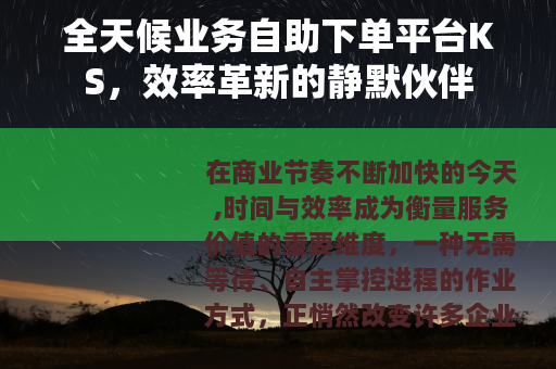 在商业节奏不断加快的今天,时间与效率成为衡量服务价值的重要维度,一种无需等待、自主掌控进程的作业方式,正悄然改变许多企业与个人的工作习惯,KS平台,作为一个提供24小时不间断服务的业务自助下单系统,正是这一趋势下的具体呈现,它不宣称颠覆,却实实在在地融入业务流程的细枝末节,成为一种静默而可靠的存在。
