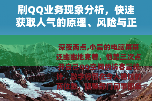 深夜两点,小吴的电脑屏幕还幽幽地亮着,他第三次点开自己QQ空间的访客量统计,数字停留在令人尴尬的两位数,隔壁部门同事那条“随口分享”的日常说说,下面整整齐齐排列着上百个点赞和彩虹般的花式评论,这种无声的对比,在当下的社交环境里,有时比工作报告上的数字更让人感到压力,他听说过有一种“服务”,能快速让这些数字膨胀起来,在搜索框里,他输入了那四个字——随后,一个他既熟悉又陌生的网络侧面,缓缓展开。