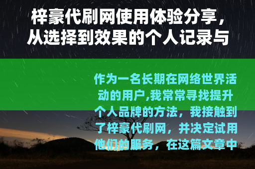 作为一名长期在网络世界活动的用户,我常常寻找提升个人品牌的方法,我接触到了梓豪代刷网,并决定试用他们的服务,在这篇文章中,我将以真实用户的视角,分享整个过程和一些实用想法,希望能为有兴趣的人提供参考。
