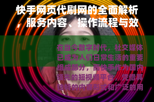 在当今数字时代,社交媒体已成为人们日常生活的重要组成部分,而快手作为国内领先的短视频平台,凭借其独特的内容形式和广泛的用户基础,吸引了无数创作者和观众,随着平台竞争的加剧,许多用户希望通过快速提升账号数据来增强影响力,这就催生了“快手网页代刷网”这类服务,这些网站通过网页形式提供数据增强服务,帮助用户增加粉丝、播放量、点赞数等指标,本文将深入探讨快手网页代刷网的各个方面,从基本概念到实际应用,以平实自然的语言呈现,帮助读者全面理解这一现象,并提供实用参考。