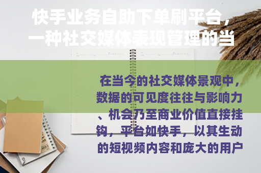 在当今的社交媒体景观中,数据的可见度往往与影响力、机会乃至商业价值直接挂钩,平台如快手,以其生动的短视频内容和庞大的用户基础,构建了一个充满活力的数字社群,在这个社群里,创作者、商家和普通用户共同演绎着一场关于关注、点赞、评论和分享的日常戏剧,自然而然地,一种围绕如何管理并提升这些数据表现的服务应运而生,其中便包括了用户可通过特定渠道自行完成数据维护操作的现象,这不是一个非黑即白的故事,而是嵌入在复杂数字生态中的一个现实环节,反映着个体与平台算法、社会期望与个人目标之间的持续互动。