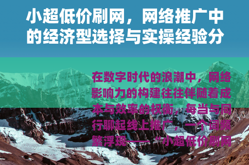 在数字时代的浪潮中,网络影响力的构建往往伴随着成本与效率的权衡,每当与同行聊起线上推广,一个词频繁浮现——“小超低价刷网”,这并非什么新奇概念,却以其亲民的价格和直观的效果,悄然渗透进无数个人与商家的营销策略中,作为一名长期观察网络生态的从业者,我无意渲染其光环,也不愿夸大其缺陷,只想以平实的笔触,聊聊这一现象背后的逻辑、应用与思考,毕竟,在网络这片无垠的田野上,每一类工具都有其生长的土壤,而理解它,或许能帮助我们更从容地耕耘。