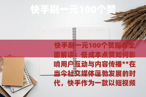 快手刷一元100个赞服务全面解读:低成本点赞如何影响用户互动与内容传播** 在当今社交媒体蓬勃发展的时代,快手作为一款以短视频为核心的平台,吸引了数以亿计的用户参与创作和分享,点赞功能作为互动的基础指标,不仅象征着内容的受欢迎程度,还直接关系到账号的曝光度和影响力,随着用户对快速提升点赞量的需求增长,一些服务应运而生,一元刷100个赞”的低成本选项,这逐渐成为一种现象,本文将深入探讨这一现象的背景、运作方式、用户动机以及它可能带来的多方面影响,旨在提供一个客观的视角,帮助读者理解其背后的动态。 快手平台自推出以来,以其独特的算法和社区氛围,鼓励用户通过短视频记录生活、展示才华,点赞数作为内容互动的重要标志,往往被视为衡量成功与否的标尺之一,对于普通用户而言,高点赞量不仅能带来心理满足感,还可能吸引更多关注者,甚至为商业化铺平道路,许多创作者寻求各种方法来增加点赞,其中就包括通过外部服务快速获取点赞,这些服务通常以极低的价格提供大量点赞,一元100个赞”,这听起来像是一个诱人的选择,尤其对于新手或希望短期内提升数据的人来说。 这种现象的出现并非偶然,在社交媒体竞争日益激烈的环境中,用户面临的压力不断增大,内容创作者往往需要投入大量时间和精力来制作视频,但结果的不可预测性使得许多人转向捷径,低成本刷赞服务正是基于这种需求而生,它们通过技术手段或人工操作,为指定视频批量添加点赞,从而在短时间内提升数据表现,这些服务通常通过在线渠道进行推广,用户只需支付少量费用,如一元钱,就能获得100个点赞,操作过程简单快捷,往往只需要提供视频链接或账号信息。 从用户的角度来看,选择刷赞服务的原因多种多样,对于一些初创账号来说,初始的低互动率可能阻碍内容传播,而刷赞可以作为一种启动策略,帮助视频进入平台的推荐流,从而吸引真实用户的关注,在某些社交场景中,高点赞量被视为社会认同的标志,能增强个人或品牌的可信度,小型商家或自媒体从业者可能利用刷赞来快速建立形象,以在市场中脱颖而出,这种做法并非没有争议,因为它涉及对平台生态的干预,可能引发一系列连锁反应。 在技术层面,刷赞服务的运作方式通常依赖于自动化工具或网络协作,这些工具模拟真实用户行为,通过多个账号对目标视频进行点赞,以实现数量的快速增加,服务提供商可能利用代理服务器或虚拟设备来规避平台的检测机制,确保操作看起来自然,尽管快手等平台不断更新算法来识别异常活动,但刷赞服务也在不断调整策略,以保持其有效性,这形成了一种动态的博弈,用户在享受短期好处的同时,也需面对潜在的不确定性。 用户体验方面,刷赞服务带来的即时效果往往令人满意,用户支付一元钱后,可能在几分钟到几小时内看到点赞数的显著增长,这能带来心理上的成就感,甚至激发更多创作热情,一些案例显示,刷赞后视频的曝光度确实有所提升,因为平台的算法可能将高互动内容视为优质,从而推荐给更多用户,这种增长并非总是可持续的,如果内容本身质量不高,真实用户的互动可能无法跟上,导致数据泡沫,长期来看反而影响账号的健康度。 对于平台生态系统而言,刷赞现象可能带来复杂的影响,它反映了用户对互动数据的重视,促使平台优化其算法和激励机制,以更好地满足真实需求,快手近年来推出了更多基于内容质量的推荐策略,减少对单纯点赞数的依赖,大量虚假点赞可能扰乱正常的排名和推荐系统,使得优质内容难以脱颖而出,从而影响整体用户体验,平台通常会通过技术手段监测和限制这类行为,但完全杜绝可能具有挑战性。 从社会文化视角看,刷赞服务折射出数字时代对量化指标的过度追捧,点赞数作为一种社交货币,被赋予了超出其本质的意义,驱动人们追求表面数据而非深层互动,这种现象不仅在快手上存在,在其他社交媒体平台也屡见不鲜,它促使我们反思:在追求影响力的过程中,我们是否忽略了内容的真实价值?一些用户开始转向更有机的增长策略,如加强社区互动、提升制作水平,这些方法虽然缓慢,但往往能建立更稳固的粉丝基础。 在实际操作中,用户若考虑使用刷赞服务,需权衡其利弊,低成本的特点使得它易于尝试,但效果可能因视频内容、平台政策等因素而异,如果视频本身具有吸引力,刷赞可能起到催化剂作用;反之,则可能只是短暂的数据修饰,过度依赖刷赞可能导致账号被平台标记,影响长期发展,许多经验丰富的创作者建议,将刷赞作为辅助手段,而非主要策略,并配合其他增长方法,如定期发布、参与热门话题等。 市场中的刷赞服务提供商众多,质量参差不齐,用户在选择时需谨慎评估其可靠性,例如通过查看用户评价、测试小规模服务等方式,一些服务可能承诺快速交付,但实际效果延迟或点赞来自不活跃账号,这反而可能降低内容的可信度,了解服务背后的运作机制至关重要,从行业趋势来看,随着平台监管的加强,刷赞服务正逐渐转向更隐蔽的形式,如通过真人互助小组或积分兑换系统,这为用户提供了更多选择,但也增加了复杂性。 在快手平台上,点赞数的意义不仅限于个人成就,还关联到商业机会,品牌合作、广告投放等往往基于账号的数据表现,因此刷赞可能被视为一种快速提升谈判筹码的方式,商业伙伴也越来越注重数据的真实性,通过分析互