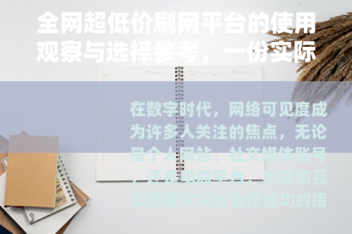 在数字时代,网络可见度成为许多人关注的焦点,无论是个人网站、社交媒体账号,还是电商平台,流量和互动数据常常被看作成功的指标之一,近年来,一种以“全网超低价”为标志的刷网服务逐渐流行起来,它们承诺以极低成本提升访问量、粉丝数或点赞量,吸引了众多用户尝试,作为一个曾经接触过这类服务的人,我想分享一些个人经验和市场观察,希望能为感兴趣的人提供参考。