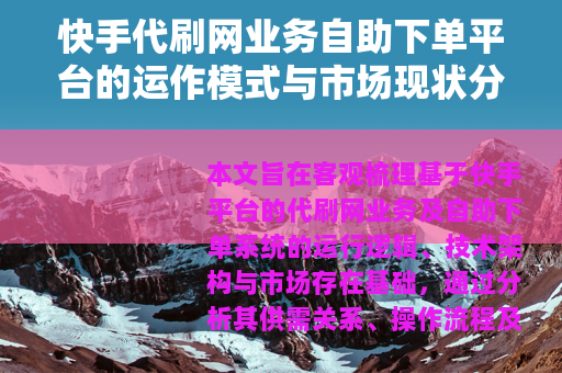 本文旨在客观梳理基于快手平台的代刷网业务及自助下单系统的运行逻辑、技术架构与市场存在基础,通过分析其供需关系、操作流程及行业生态,为相关互联网营销现象提供一个观察视角。