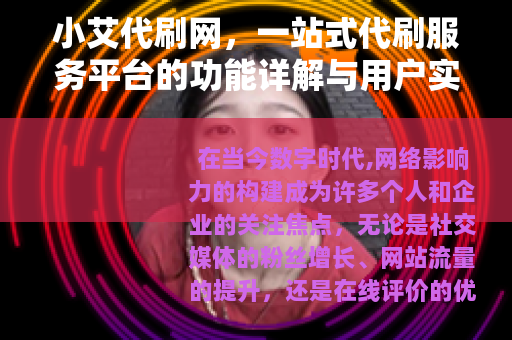 在当今数字时代,网络影响力的构建成为许多个人和企业的关注焦点,无论是社交媒体的粉丝增长、网站流量的提升,还是在线评价的优化,这些需求催生了代刷服务的兴起,小艾代刷网作为这样一个平台,以其多样的服务和用户友好的界面,逐渐在市场中占据一席之地,本文将从实际使用角度出发,深入探讨小艾代刷网的特点、操作流程和用户体验,旨在为有兴趣的读者提供一份详实的参考。
