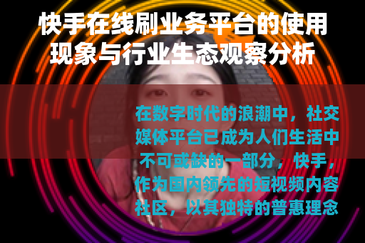 在数字时代的浪潮中,社交媒体平台已成为人们生活中不可或缺的一部分,快手,作为国内领先的短视频内容社区,以其独特的普惠理念和浓厚的烟火气息,吸引了数以亿计的用户在此创作、分享与互动,在这个庞大的数字生态里,一种被称为“在线刷业务”的现象悄然存在,它并非浮于表面的主流话题,却真实地嵌入了部分创作者和商家的运营逻辑中,我们不妨暂且搁置预设的价值判断,以一种平实的视角,去观察和梳理这一现象及其所处的行业环境。