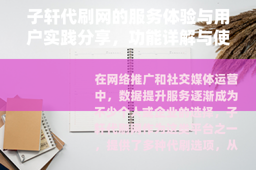在网络推广和社交媒体运营中,数据提升服务逐渐成为不少个人或企业的选择,子轩代刷网作为这类平台之一,提供了多种代刷选项,从粉丝增长到流量提升,覆盖了主流社交媒体的需求,作为一个曾经使用过其服务的用户,我想分享一些实际的体验和观察,希望能为感兴趣的人提供参考。