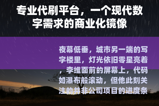 夜幕低垂,城市另一端的写字楼里,灯光依旧零星亮着,李维面前的屏幕上,代码如瀑布般滚动,但他此刻关注的并非公司项目的进度条,而是一个后台数据监控面板,面板上,数十个短视频账号的点赞、评论、粉丝数正以某种规律性的节奏缓慢爬升,这不是什么神秘的黑客行为,而是他维持生计的另一份“工作”——通过一个他合作多年的“专业代刷平台”,为客户的社交媒体账号提供数据增长服务。