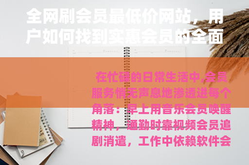 在忙碌的日常生活中,会员服务悄无声息地渗透进每个角落:早上用音乐会员唤醒精神,通勤时靠视频会员追剧消遣,工作中依赖软件会员提升效率,晚上则通过购物会员省钱下单,这些服务确实方便,但月度或年度的订阅费用叠加起来,却成了一笔不小的开销,越来越多的人开始寻找更经济的途径,而“全网刷会员最低价网站”便在这样的需求中逐渐走入视野,这些网站并非神秘的存在,它们更像是聚集优惠信息的集市,帮助用户在庞杂的网络世界中筛选出最合适的会员折扣。