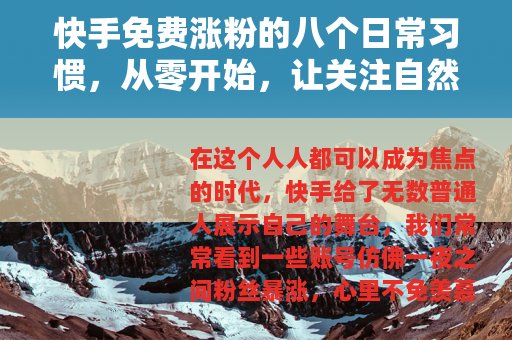 在这个人人都可以成为焦点的时代,快手给了无数普通人展示自己的舞台,我们常常看到一些账号仿佛一夜之间粉丝暴涨,心里不免羡慕,也暗暗琢磨:他们是怎么做到的?是不是有什么不为人知的捷径?尤其是“免费涨粉”,听起来格外诱人,仿佛是一把无需钥匙就能打开宝藏大门的咒语,真正的、可持续的“免费涨粉”,往往不是某个单一的奇招,而是一系列正确习惯的日积月累,它不依赖于运气,而是构筑于对平台的深入理解、对内容的持续投入,以及与观众建立真实连接的耐心之上,它更像是一场精心打理的自家庭院,需要你每日浇水、除草、修剪,才能迎来繁花似锦。