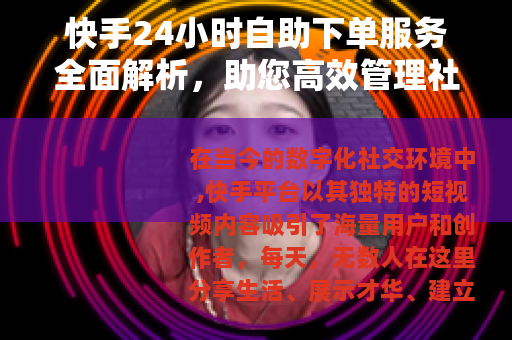 在当今的数字化社交环境中,快手平台以其独特的短视频内容吸引了海量用户和创作者,每天,无数人在这里分享生活、展示才华、建立社群,而随着竞争的加剧,创作者们开始寻求更高效的方法来维护和提升他们的在线影响力,一种称为“24小时自助下单”的服务逐渐走入人们的视野,这项服务允许用户在任何时间通过自动化系统下单,以获取诸如点赞、评论或粉丝等互动元素,它不像传统的人工推广那样受时间限制,而是全天候可用,为创作者提供了灵活的选择,本文将深入探讨这一服务的运作机制、实际应用以及它在快手生态中的角色,帮助您理解如何利用它来优化创作流程,同时保持内容的原生性和吸引力。