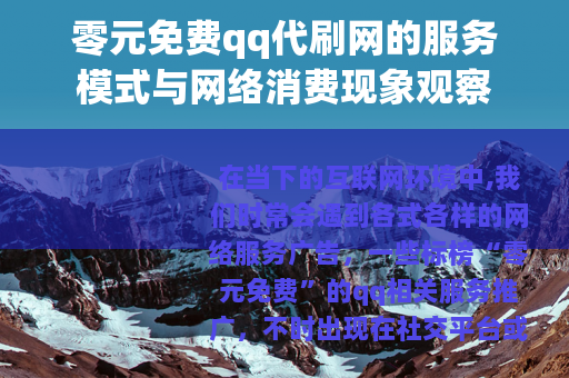 在当下的互联网环境中,我们时常会遇到各式各样的网络服务广告,一些标榜“零元免费”的qq相关服务推广,不时出现在社交平台或小众论坛的角落,这些信息往往以吸引眼球的字样出现,让人不由自主地多看两眼,我们今天不妨就这一现象,聊一聊其背后可能反映的一些网络生态和用户心理。