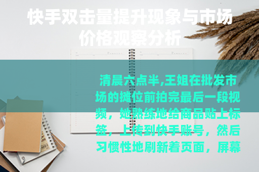 清晨六点半,王姐在批发市场的摊位前拍完最后一段视频,她熟练地给商品贴上标签,上传到快手账号,然后习惯性地刷新着页面,屏幕右下方那个心形图案旁边的数字,是她每天开工前都会多看几眼的指标,在这个超过三亿日活用户的平台上,无数个和王姐一样的内容创作者、小商家、手艺人,每天都被包裹在流量的浪潮里,而“双击”——那个红色的爱心,已经成为某种可见的、可量化的“注意力的货币”,随之衍生出的服务现象,比如所谓“秒刷低价”的推广方式,也悄然渗透进这个生态的缝隙中。
