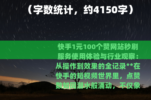 快手1元100个赞网站秒刷服务使用体验与行业观察:从操作到效果的全记录** 在快手的短视频世界里,点赞数如同潮水般涌动,不仅象征着内容的受欢迎程度,更直接影响到算法的推荐和账号的成长,对于许多创作者来说,如何快速提升点赞数成了一个日常话题,近年来,一种名为“1元100个赞网站秒刷”的服务在网络上悄然流行,它以低廉的价格和迅捷的速度吸引着用户的眼球,作为一名长期关注社交媒体动态的普通用户,我决定亲身尝试这类服务,并将整个过程细致地记录下来,分享给更多感兴趣的人,本文不会使用夸张的语言或煽动性的表述,而是以平实的叙述为主,探讨这一现象的实际运作、用户体验以及背后的市场逻辑。 快手平台自推出以来,凭借其独特的社区氛围和算法机制,成为了数亿用户分享生活、展示才华的舞台,点赞、评论和分享等互动数据不仅是创作者获得成就感的来源,更是视频能否进入更大流量池的关键因素,随着竞争的加剧,一些创作者开始寻求快速提升数据的方法,而刷赞网站正是应运而生的产物之一,这些网站通常打着“秒刷”、“低价”的旗号,承诺在几分钟内为指定视频添加大量点赞,价格低至1元100个赞,这种服务看似简单高效,但实际使用中会遇到哪些情况?效果是否持久?又会对账号产生什么影响?我带着这些疑问开始了探索。 我通过搜索引擎查找了几家提供快手刷赞服务的网站,输入关键词后,结果页面出现了数十个相关链接,其中不少标榜着“专业秒刷”、“100%稳定”等字样,我随机点开了几个网站,发现它们的界面设计大多简洁,甚至有些粗糙,首页直接展示着服务项目和价格表,常见的分类包括点赞、粉丝、评论和分享等,而“快手1元100个赞”往往被放在醒目位置,作为吸引用户的入门产品,这些网站通常不需要注册账号,只需输入视频链接、选择数量并支付即可,流程极其简单,为了全面了解,我选择了三家不同的网站进行测试,分别记为A站、B站和C站。 A站是一个看起来较为老牌的刷赞平台,首页有详细的教程和客服联系方式,我按照提示,复制了自己在快手发布的一个美食视频链接——这个视频内容较为普通,发布后仅获得个位数点赞,适合作为测试样本,将链接粘贴到订单框后,页面显示了多种套餐选项:基础版1元100个赞、标准版5元600个赞、高级版10元1500个赞等,我选择了基础版,支付方式支持支付宝和微信扫码,完成支付后,订单状态立即更新为“处理中”,并提示预计完成时间为3分钟,我同时打开快手视频页面,实时观察点赞数的变化,大约两分钟后,点赞开始陆续增加,每次刷新页面都能看到数字跳动,最终稳定在新增100个赞左右,这些点赞账号的头像多为系统默认图片,昵称杂乱无章,且没有留下任何评论,明显是自动化操作的痕迹。 B站的设计则更为现代化,声称采用“真人点赞”技术,但价格稍高,1元仅能购买80个赞,我同样输入另一个旅行视频链接,支付后等待了约五分钟,点赞数才缓慢增长到80个,与A站相比,这些点赞账号的活跃度似乎略高,部分账号有少量历史作品,但整体仍显得单薄,C站则主打“高速秒刷”,1元100个赞,支付后几乎瞬间完成,点赞数飙升,但账号质量最差,几乎全是空白账号,通过这三家网站的对比,我初步感受到刷赞服务的差异:速度、价格和账号质量之间存在一定的权衡,而用户的选择往往取决于即时需求。 从技术角度看,这些刷赞网站的实现方式并不复杂,据行业资料显示,它们通常依靠自动化脚本或软件模拟真实用户行为,向快手服务器发送点赞请求,为了规避平台检测,网站会使用代理IP地址池,使得请求来源分散在不同地区,模拟自然流量,一些网站还整合了“账号农场”,即批量注册或购买的闲置账号,专门用于刷量任务,这种模式成本低廉,能够支撑起1元100个赞的定价,但缺点是点赞账号缺乏真实互动历史,容易被平台算法识别为异常,更高级的服务则采用众包模式,通过任务平台雇佣真实用户进行点赞,但成本较高,难以在低价市场中普及,总体而言,刷赞技术的核心是批量处理和伪装,其效果取决于平台反作弊系统的严密程度。 为了更深入了解用户反馈,我通过社交媒体联系了几位曾使用过刷赞服务的快手创作者,一位名叫小张的学生创作者告诉我,他刚开始发布搞笑视频时,由于粉丝基数小,点赞数长期低迷,在朋友推荐下,他尝试了1元100个赞的服务,视频数据瞬间提升,随后被算法推荐到“发现”页面,带来了真实用户的关注和互动,他认为刷赞帮助他突破了初始的“冷启动”阶段,但后来他减少了使用频率,转而专注于内容优化,因为过度依赖刷赞导致后续视频互动率下降,另一位商家用户李女士则分享道,她经营一家手工艺品店,通过快手推广产品,刷赞后视频热度上升,短期销量有所增长,但长期来看,客户反馈指出视频内容本身不够精致,反而影响了品牌形象,她开始调整策略,将重心放在拍摄质量和故事叙述上,还有一位资深创作者王先生坚决反对刷赞,他认为这种行为破坏了社区公平性,且可能引发平台处罚,他通过持续输出优质内容,积累了近十万粉丝,并建议新手创作者耐心成长,避免急功近利。 从市场需求分析,刷赞服务的兴起与快手平台的竞争环境密不可分,随着短视频行业的爆发,创作者数量激增,每个人都希望自己的内容脱颖而出,点赞数作为显性指标,不仅影响心理成就感,还可能带来商业机会,例如广告合作