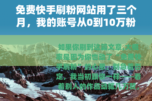 如果你刷到这篇文章,大概率是因为你也动了“免费快手刷粉”的心思,别急着否定,我当初跟你一样——看着别人的作品动辄几万赞,自己的视频发出去半天播放量还是个位数,那种感觉就像站在游乐场门口,听见里面欢声笑语,自己却连门票都买不起,我把目光投向了那些号称“免费”的刷粉网站。