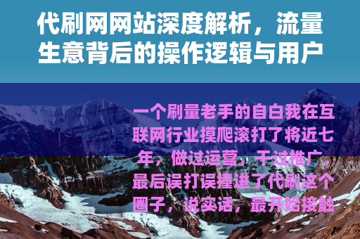 我在互联网行业摸爬滚打了将近七年,做过运营,干过推广,最后误打误撞进了代刷这个圈子,说实话,最开始接触代刷网网站的时候,我也觉得这东西上不了台面,但时间久了,我逐渐发现,这个看似灰色的领域,其实藏着整个互联网生态最真实的供需关系——有人需要数据,就有人制造数据,就这么简单。