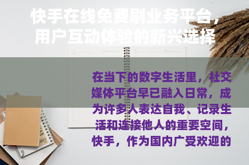 在当下的数字生活里,社交媒体平台早已融入日常,成为许多人表达自我、记录生活和连接他人的重要空间,快手,作为国内广受欢迎的短视频社区,其内容生态的活力很大程度上源自用户之间丰富多样的互动,点赞、评论、分享、关注,这些看似简单的数字行为,构成了平台活跃度的基础,也影响着内容创作者的热情与能见度,在这样的背景下,一些提供所谓“在线免费刷业务”的网络服务开始进入部分用户的视野,它们通常宣称能够以无需付费的方式,帮助用户提升其在快手平台上的某些互动数据,这种现象的出现,并非偶然,它与当前社交媒体生态的某些特质紧密相关。