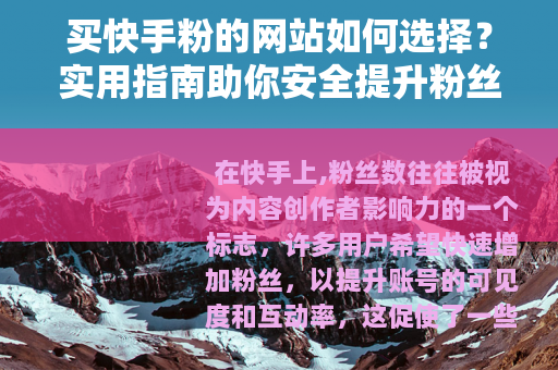 在快手上,粉丝数往往被视为内容创作者影响力的一个标志,许多用户希望快速增加粉丝,以提升账号的可见度和互动率,这促使了一些人考虑通过购买粉丝的网站来加速这一过程,我们来聊聊买快手粉的网站,以及如何在实际操作中做出合适的选择。