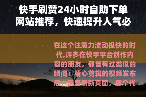 在这个注意力流动极快的时代,许多在快手平台创作内容的朋友,都曾有过类似的瞬间:精心剪辑的视频发布后,反复刷新页面,那个代表喜爱的红心数字却增长得缓慢,这种期待与现实的落差,或许你也体会过,它无关乎内容质量的高低,有时只是缺少一个初始的推动力,一种能够提供即时反馈的服务——即那些标榜“24小时自助下单”的网站,开始进入一部分创作者的视野,它们像是一个静默运转的后台工具,随时待命,用以回应那份对“被看见”的迫切需求。