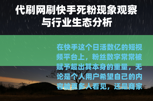 在快手这个日活数亿的短视频平台上,粉丝数字常常被赋予超出其本身的重量,无论是个人用户希望自己的内容被更多人看见,还是商家账号试图快速建立市场信任,粉丝量往往成为第一块敲门砖,在这种普遍心态的催生下,一种灰色服务悄然生长:通过代刷网购买快手死粉,这并非新鲜事物,却始终与平台规则、用户需求以及数据真实性之间形成一种微妙的共存。