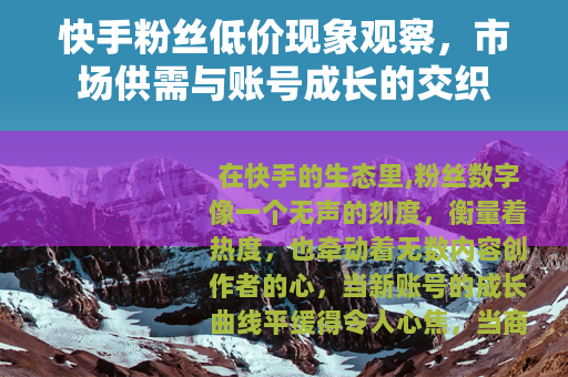 在快手的生态里,粉丝数字像一个无声的刻度,衡量着热度,也牵动着无数内容创作者的心,当新账号的成长曲线平缓得令人心焦,当商业合作的敲门声似乎总与某个粉丝量级挂钩,“快速积累关注者”便成了一种强烈的需求,一个与之相应的市场悄然滋生——那里提供着形形色色标价低廉的粉丝增长服务,这并非什么隐秘的角落,它更像是这个注意力经济时代下,一种直白而复杂的供需体现。