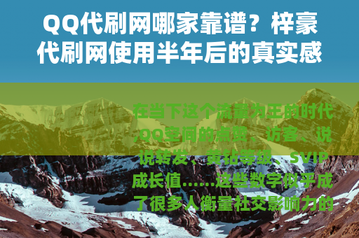 在当下这个流量为王的时代,QQ空间的点赞、访客、说说转发、黄钻等级、SVIP成长值……这些数字似乎成了很多人衡量社交影响力的标尺,我也曾是其中一员,为了能让自己的QQ空间看起来更“热闹”,四处寻找靠谱的代刷网站,前前后后接触过十几个平台,踩过不少坑,也总结出了一些门道,就重点聊聊我使用时间最长的“梓豪代刷网”——不是广告,纯粹是从用户角度出发,把半年来的实际体验、下单流程、售后服务以及行业内的一些潜规则,原原本本写出来,希望能给正在找代刷渠道的你一点参考。