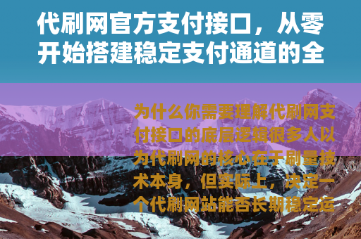 很多人以为代刷网的核心在于刷量技术本身,但实际上,决定一个代刷网站能否长期稳定运营的关键,是支付接口,支付通道一旦断裂,平台立刻瘫痪,我见过太多代刷站死在支付环节上的案例——明明业务模型跑得通,流量也充足,最终因为支付接口被封或者结算卡住,前期投入全部打水漂。