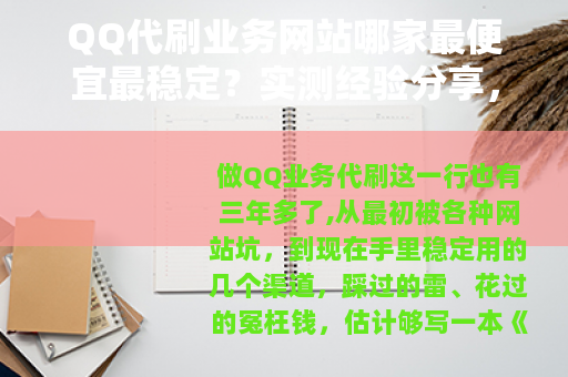 做QQ业务代刷这一行也有三年多了,从最初被各种网站坑,到现在手里稳定用的几个渠道,踩过的雷、花过的冤枉钱,估计够写一本《避坑指南》,最近又有不少朋友私下问我,到底哪个QQ代刷网站最便宜?哪个最稳定?今天干脆把我这些年的真实体验整理出来,不吹不黑,全是真金白银砸出来的经验。