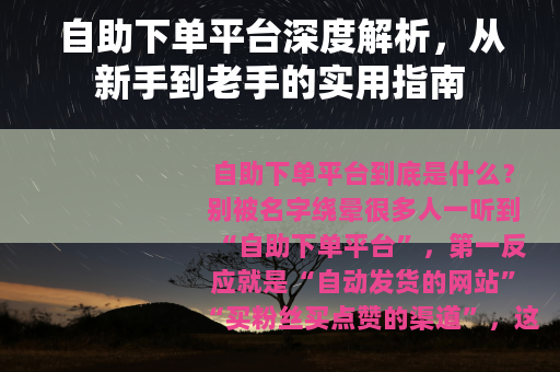 自助下单平台深度解析,从新手到老手的实用指南