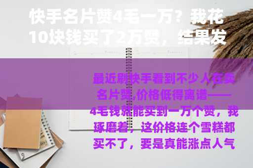 最近刷快手看到不少人在卖名片赞,价格低得离谱——4毛钱就能买到一万个赞,我琢磨着,这价格连个雪糕都买不了,要是真能涨点人气,倒也不亏,于是花10块钱买了2.5万个赞,想看看这玩意儿到底管不管用。
