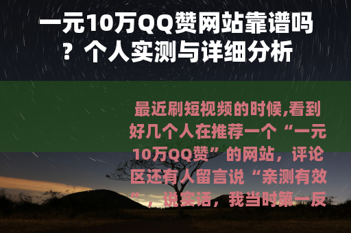 最近刷短视频的时候,看到好几个人在推荐一个“一元10万QQ赞”的网站,评论区还有人留言说“亲测有效”,说实话,我当时第一反应是“这玩意儿也太便宜了吧”,毕竟平时找个人工刷赞,一千个就要几十块,一元换十万,听着就跟天上掉馅饼一样,但我这人好奇心重,加上也就一块钱的事,就想着试试看,大不了当买杯奶茶少加个料,结果呢?整个过程比我想象的曲折得多,而且最后的结果也让我彻底明白了其中的门道,今天就把我这几天的经历和观察到的东西写出来,给同样好奇的朋友们参考。