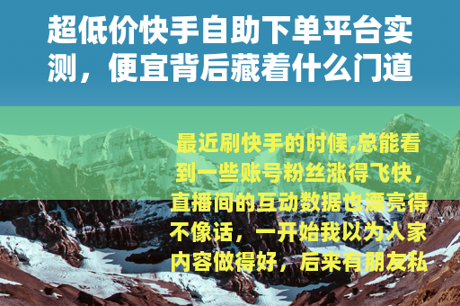最近刷快手的时候,总能看到一些账号粉丝涨得飞快,直播间的互动数据也漂亮得不像话,一开始我以为人家内容做得好,后来有朋友私下告诉我,很多数据其实是买的——用那种“超低价快手业务自助下单平台”,花几十块钱就能买几千粉、几百个直播人气,我好奇地试了试,结果发现这事儿远比想象中复杂。