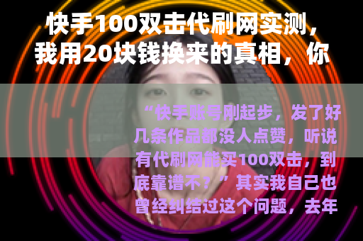 “快手账号刚起步,发了好几条作品都没人点赞,听说有代刷网能买100双击,到底靠谱不?”其实我自己也曾经纠结过这个问题,去年我做了个搞笑段子号,发了十几条视频,播放量最多不过三百,点赞更是可怜到个位数,那时候我翻遍了贴吧、知乎和各种短视频教程,最后抱着试试看的心态,找了一家号称“快手100双击秒到”的代刷网,今天就把这段经历原原本本写下来,包括我踩过的坑、发现的门道,以及这类服务到底能不能帮你搞起来。