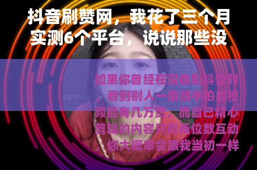如果你曾经在深夜刷抖音时,看到别人一条随手拍的视频能有几万赞,而自己精心剪辑的内容只有两位数互动,你大概率会跟我当初一样——点开搜索引擎,输入“抖音刷赞网”,这不是什么见不得人的念头,在流量为王的时代,谁不想让自己的作品被更多人看见?但问题是,这些网站真的有用吗?花了钱买来的赞,除了让数字变好看,还能带来什么?带着这些疑问,我用了三个月时间,亲自测试了六个不同规模的刷赞平台,从几十块的入门套餐到上千块的“高级套餐”,从号称真人点赞的到明目张胆用机器人的,今天把全部过程写下来,希望能给正在犹豫的你一点参考。