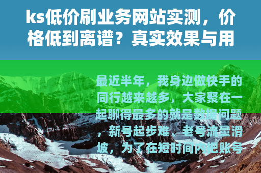 最近半年,我身边做快手的同行越来越多,大家聚在一起聊得最多的就是数据问题,新号起步难、老号流量滑坡,为了在短时间内把账号做起来,很多人把目光投向了那些号称“1元1000播放”“10元1万粉丝”的ks低价刷业务网站,说实在的,我一开始也抱着试试看的心态接触了几个,结果踩了不少坑,今天这篇内容,我就把自己亲身测试过、以及从其他用户那里收集到的真实情况写出来,给想走这条路的兄弟们做个参考,不吹不黑,全是实操后的实话。