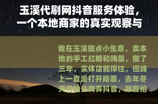 我在玉溪做点小生意,卖本地的手工红糖和腌菜,做了三年,实体店能撑住,但线上一直没打开局面,去年冬天开始认真弄抖音,想着拍点制作过程、原料产地,应该能吸引点同城客户,理想挺丰满,现实是发了一个月,播放量基本在200到500之间打转,偶尔破千都算过年了。
