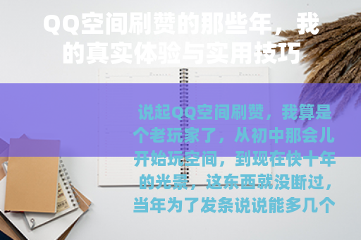 说起QQ空间刷赞,我算是个老玩家了,从初中那会儿开始玩空间,到现在快十年的光景,这东西就没断过,当年为了发条说说能多几个赞,半夜不睡觉守着手机,那种心情现在想想还挺有意思的。