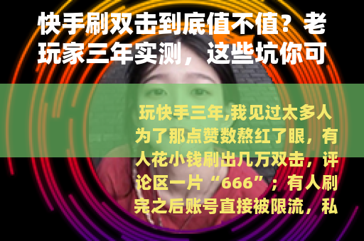 玩快手三年,我见过太多人为了那点赞数熬红了眼,有人花小钱刷出几万双击,评论区一片“666”;有人刷完之后账号直接被限流,私信问我的时候哭都哭不出来,今天我就把这三年来自己试过、身边朋友踩过的关于快手刷双击的那些事,原原本本讲给你听,没有套话,只有干货。