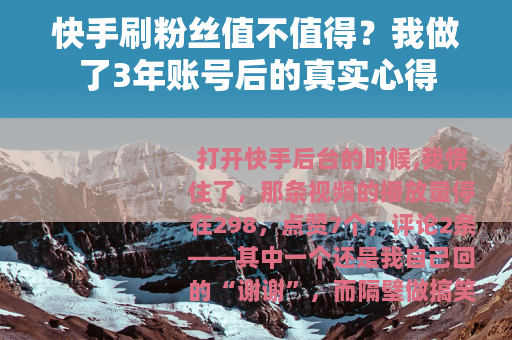 打开快手后台的时候,我愣住了,那条视频的播放量停在298,点赞7个,评论2条——其中一个还是我自己回的“谢谢”,而隔壁做搞笑段子的哥们,一条随手拍的猫喝水,轻轻松松破万,他说他买了两千粉,账号立刻活了,我盯着那个数字,手指在充值页面上悬了十几秒,最后还是关掉了手机。