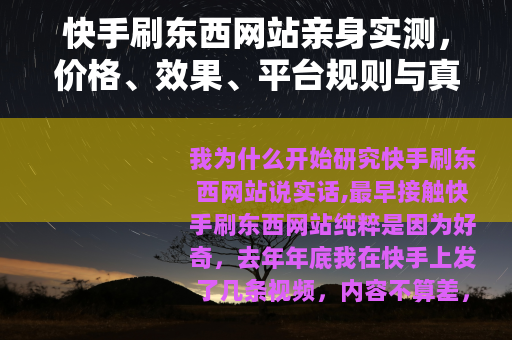 我为什么开始研究快手刷东西网站