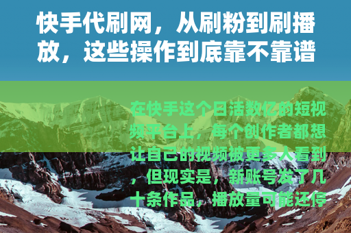 在快手这个日活数亿的短视频平台上,每个创作者都想让自己的视频被更多人看到,但现实是,新账号发了几十条作品,播放量可能还停留在两位数,一些人把目光投向了“快手代刷网”——这些网站声称花几十块钱就能让粉丝数暴涨几千,或者让视频播放量瞬间破万,它们到底是怎么运作的?用了之后会有什么后果?今天我就从实际操作层面,掰开揉碎聊一聊这个话题。